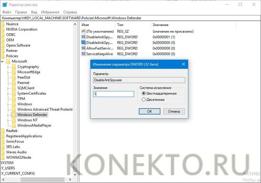 Для полного отключения встроенного антивируса потребуется внести изменения в реестр Windows 10