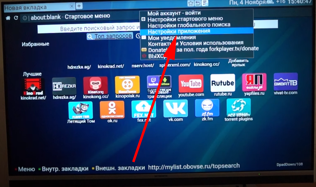 3. включите RemoteFork и откройте ForkPlayer на телевизоре.