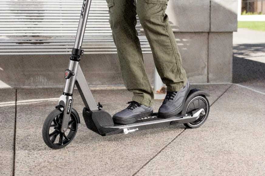 Для людей с большим весом найти самокат не так уж легко и модель от компании Razor это исправит. Она рассчитана на вес взрослого пользователя до 235 кг. Устройство не рассчитано на быструю езду – разгоняется она до 24 км/ч, проходит 15 км. Колеса здесь 200 мм. Несмотря на тот факт, что модель рассчитана на серьезные нагрузки, сама по себе она легкая – 9,5 кг. Корпус складной, руль регулируется по высоте, есть подножка.