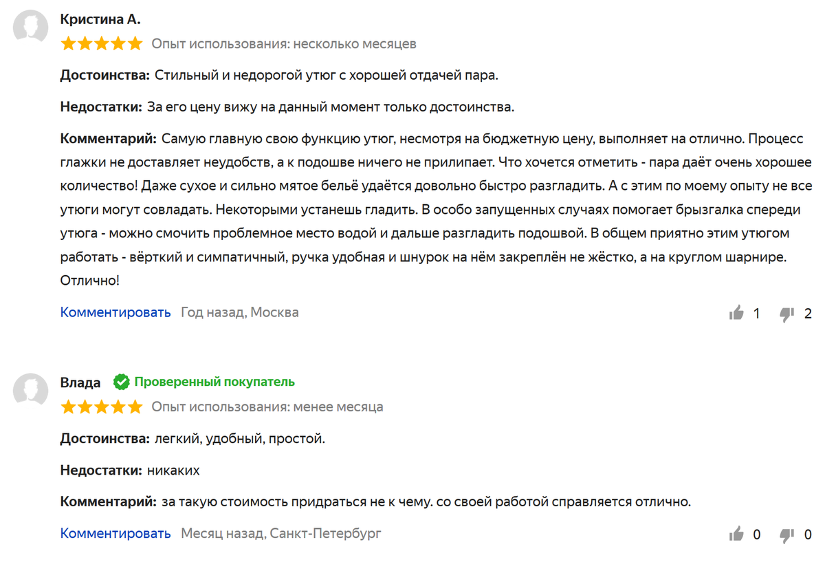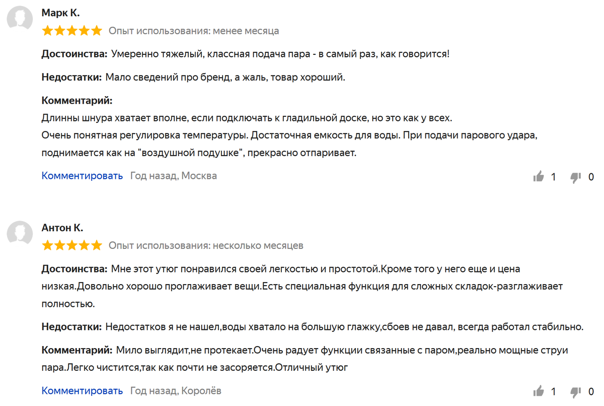 Что касается недостатков, то стоит вспомнить о длительном периоде остывания и отсутствии режима автоматической подачи пара. Стоимость утюга составляет 4600 р.