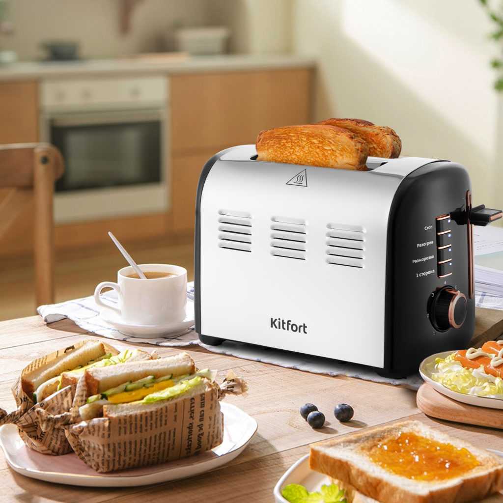 - Ускорение процесса приготовления завтрака. Пока тостер поджаривает ароматные ломтики, у вас будет время подготовить начинку для сэндвичей или намазку для тостов. Не требует дополнительного времени на разогрев, как в случае со сковородой или духовкой.