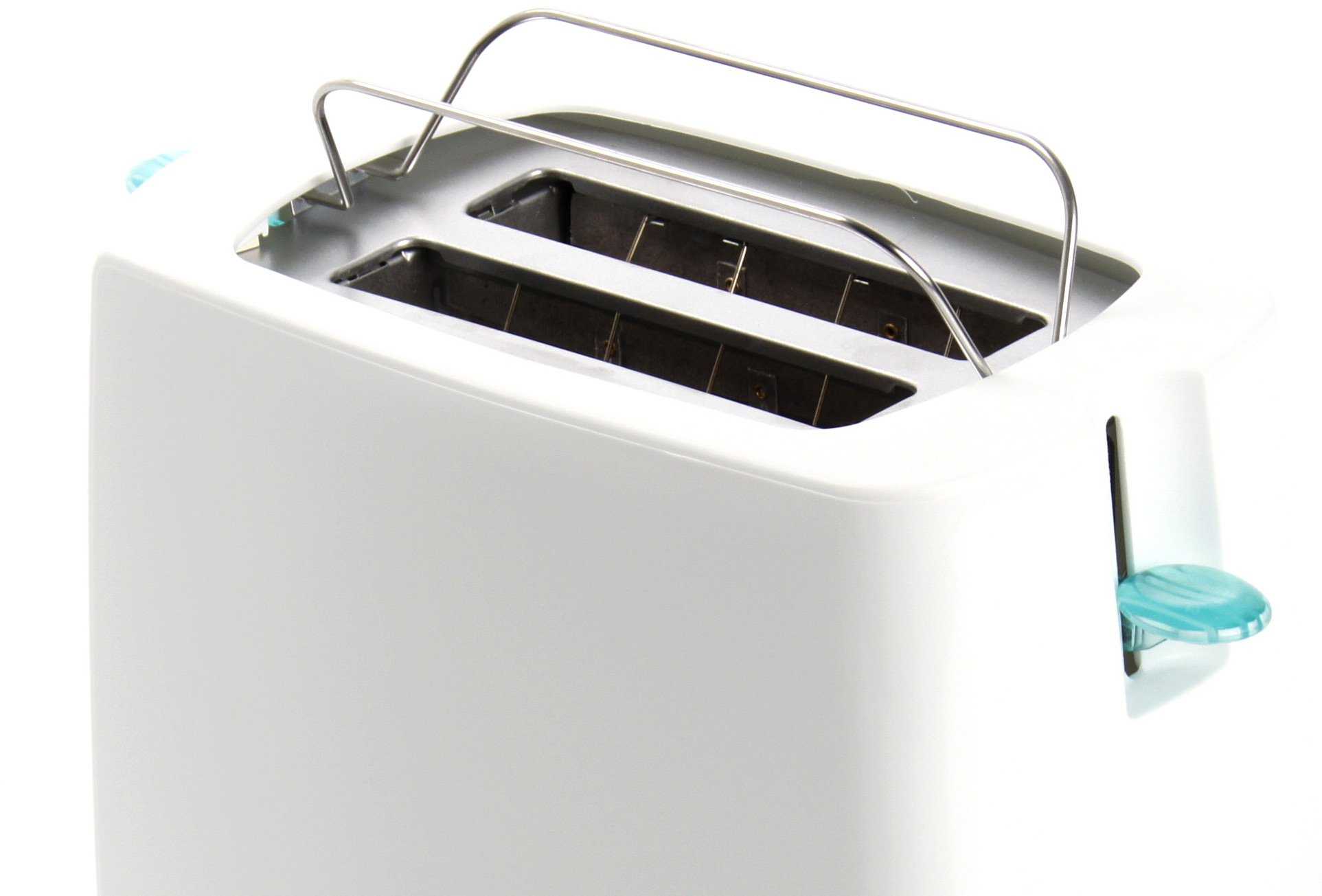 Компактный тостер, выполнен в серебристо-черном и бело-голубом цвете, он быстро готовит тосты с мягкой, хрустящей корочкой. Работает за счет мощности 1300 Вт, что позволяет за 20-30 секунд приготовить вкусный завтрак. Он имеет миниатюрные размеры, поэтому не занимает много места на рабочей поверхности, вписывается в любой интерьер. Корпус изготавливается из нержавеющей стали, оснащен термостойким пластиком. Сверху устройство представлено двумя удлиненными отделениями, каждый из которых вмещает в себя по 2 тоста. Прорезиненные ножки повышают устойчивость прибора, есть съемный контейнер для крошек, которые убираются за несколько секунд. Тостер не нужно мыть, достаточно протереть его салфеткой, избавляя от остатков крошек.