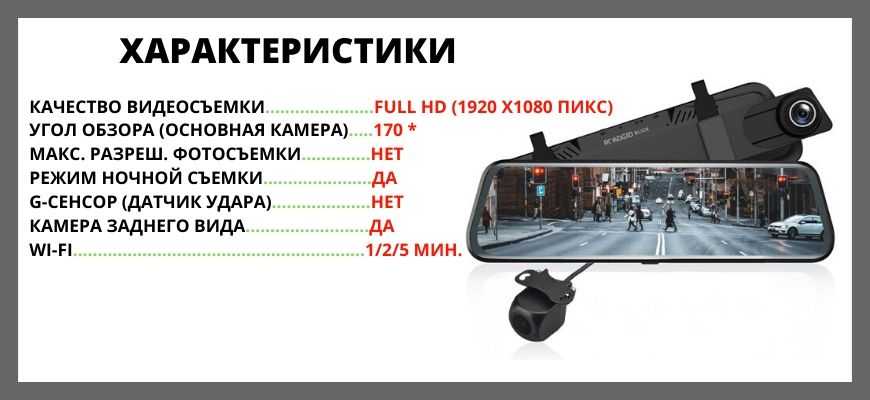 | Функции | GPS – модуль для информации о поездке, нанесения координат и скорости на видео, датчик удара и движения, режим мониторинга парковки, система помощи при парковке задним ходом, WDR для улучшения видео |
