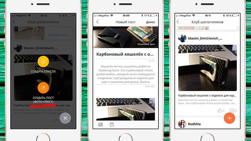 Жмёте «+» и выбираете «создать пост». Навыков вёрстки не нужно, просто прикрепляете фото в шапке, добавляете заголовок и тысячу знаков в качестве описания. В конце можно залить ещё несколько фото и хэштеги. Не забудьте добавить ссылку на обозреваемый товар.