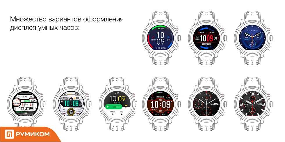 На выбор пользователю доступно множество вариантов оформления дисплея умных часов: классический хронограф со стрелками и тремя дополнительными циферблатами, футуристичный механический доспех, спортивное табло и не только. Кроме того, в качестве фона для циферблата можно установить любимые фотографии, переключаясь между ними легким движением пальца по часам или в приложении.