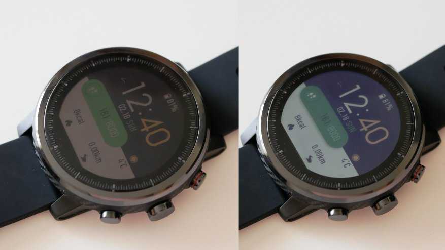 Своеобразное решение позволяет серьезно экономить заряд и обойтись без режима Always-ON: дисплей отображает информацию всегда. Но в «спящем режиме» для её чтения потребуется внешний свет, как для обычных часов.