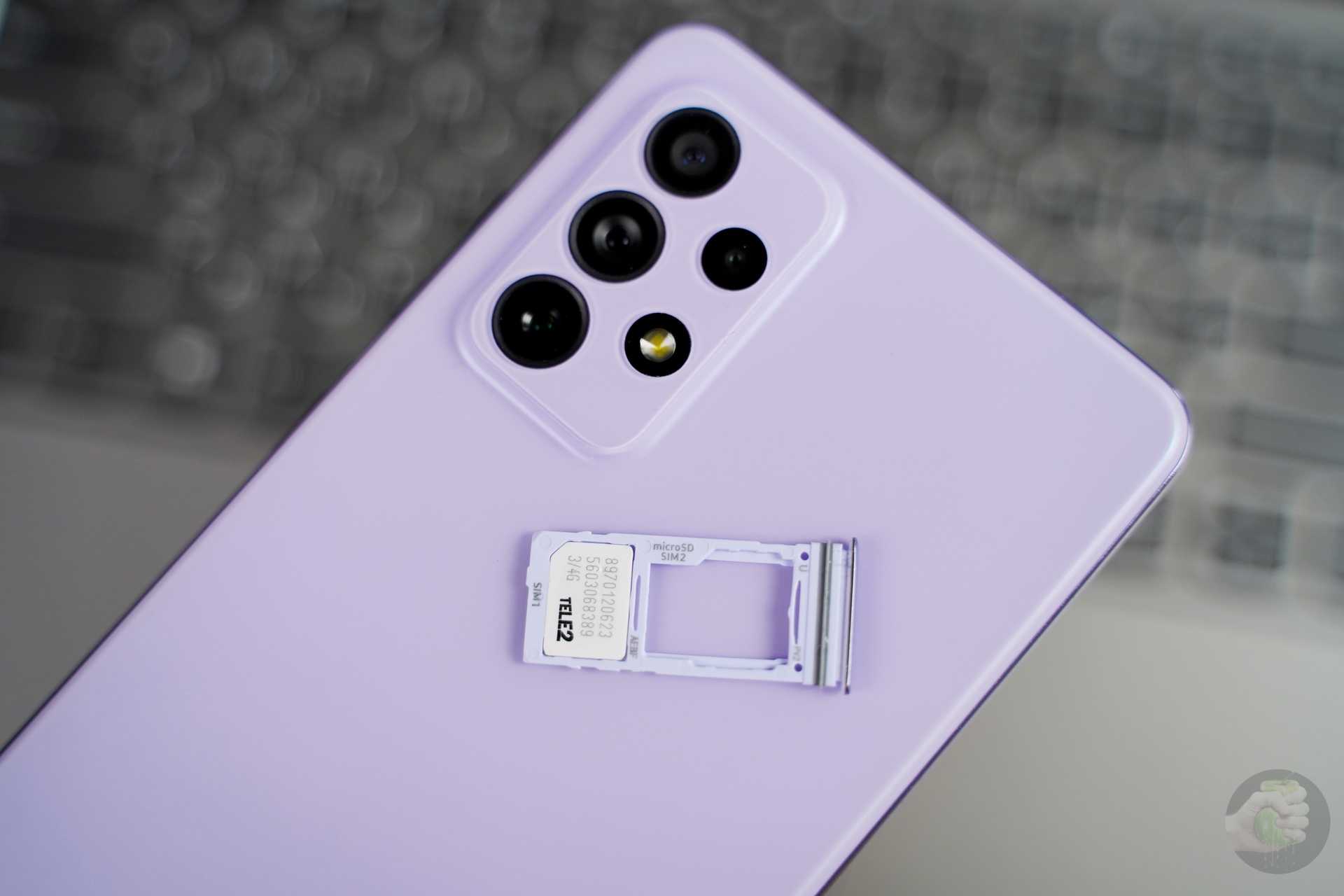 В телефонах по два слота для SIM-карт, поддержку eSIM, как в старшей S-серии, пока не добавили. Отсек под карточку памяти объединён с одним из лотков для SIM — странный шаг, учитывая, что телефоны не самые дешёвые и даже в более простых моделях есть отдельное отверстие под карточку памяти. Причём даже в моделях прошлого поколения Galaxy A51/A71 был тройной слот, но теперь упростили до двойного.
