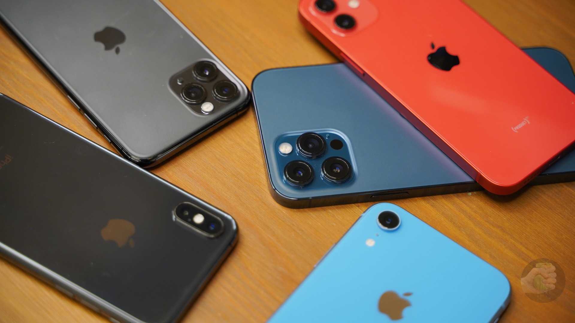 Слева направо: iPhone XS, iPhone 11 Pro, iPhone 12, iPhone XR. Фото: Александр Побыванец / Wylsacom Media