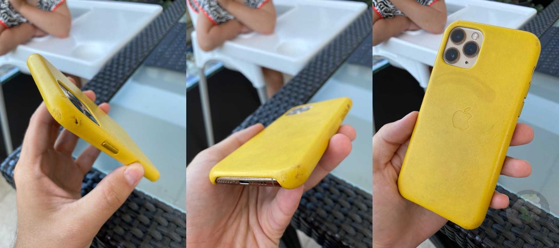Напротив, жена пользуется айфоном исключительно в чехле, поэтому регулярно обновляем «чехольный» парк аксессуаров. Хочу порекомендовать фирменный прозрачный чехол. Он выполнен из поликарбоната, прочный и довольно жёсткий, из минусов — со временем материал желтеет. Попробовал кожаный чехол, но ярко-жёлтый аксессуар недели за три пришёл в негодность. Кожа засаливается, чернеет, внешний вид портится чуть ли не на глазах.