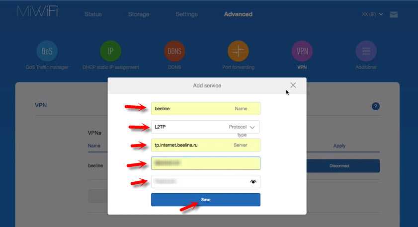 Настройка подключения PPTP и L2TP (Билайн) на роутере Сяоми Ми3
