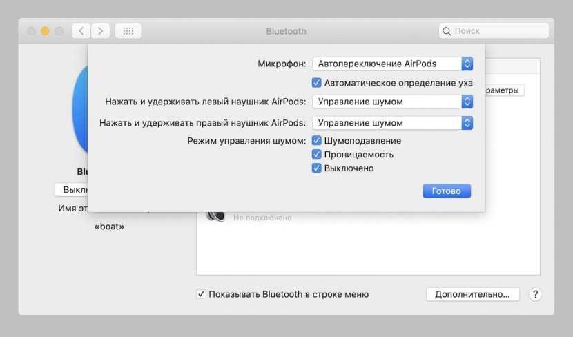 Также окно подключения показывает уровень заряда батареи правого и левого наушника, а также зарядного чехла.