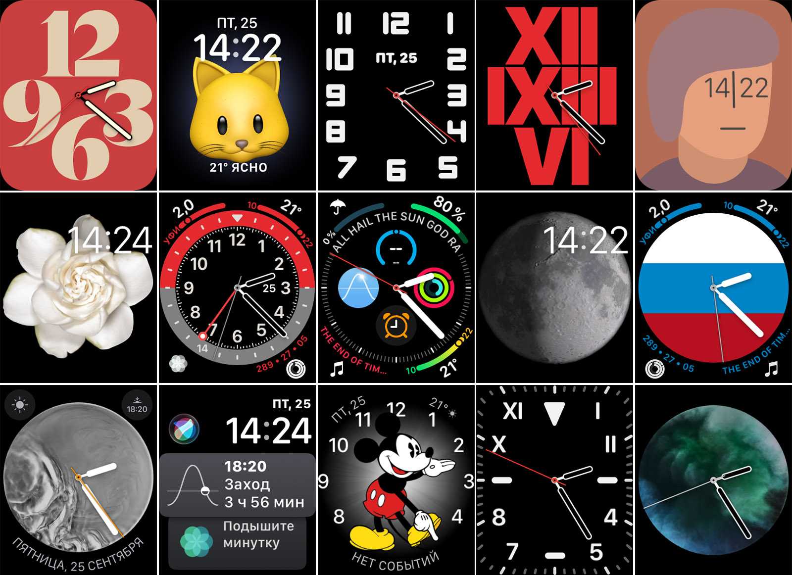 - Красивые и настраиваемые циферблаты часов