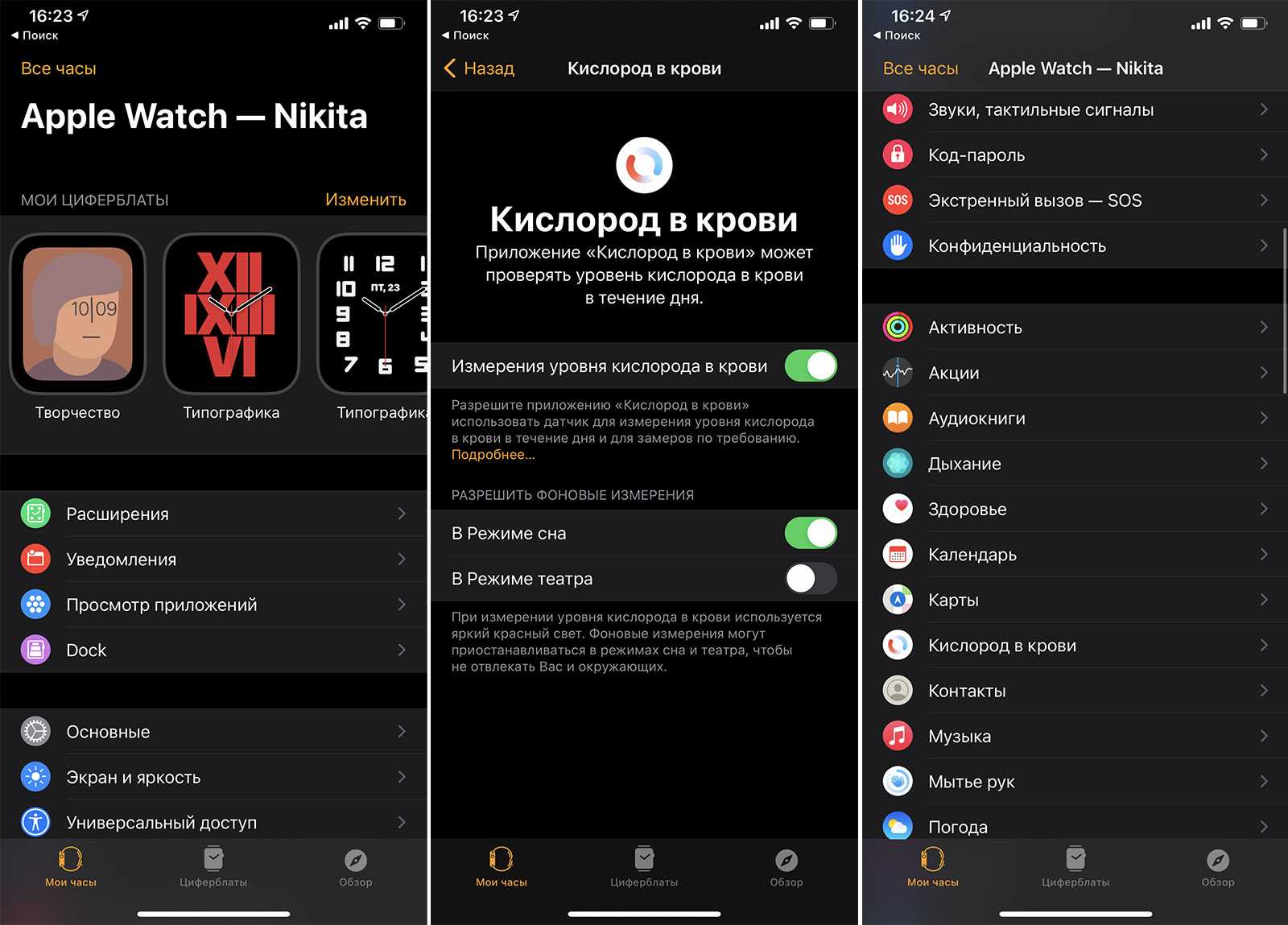 Часы измеряют сатурацию в течение дня автоматически, без вашего участия. Они также делают это во время сна, если не отключите функцию вручную в приложении Watch.