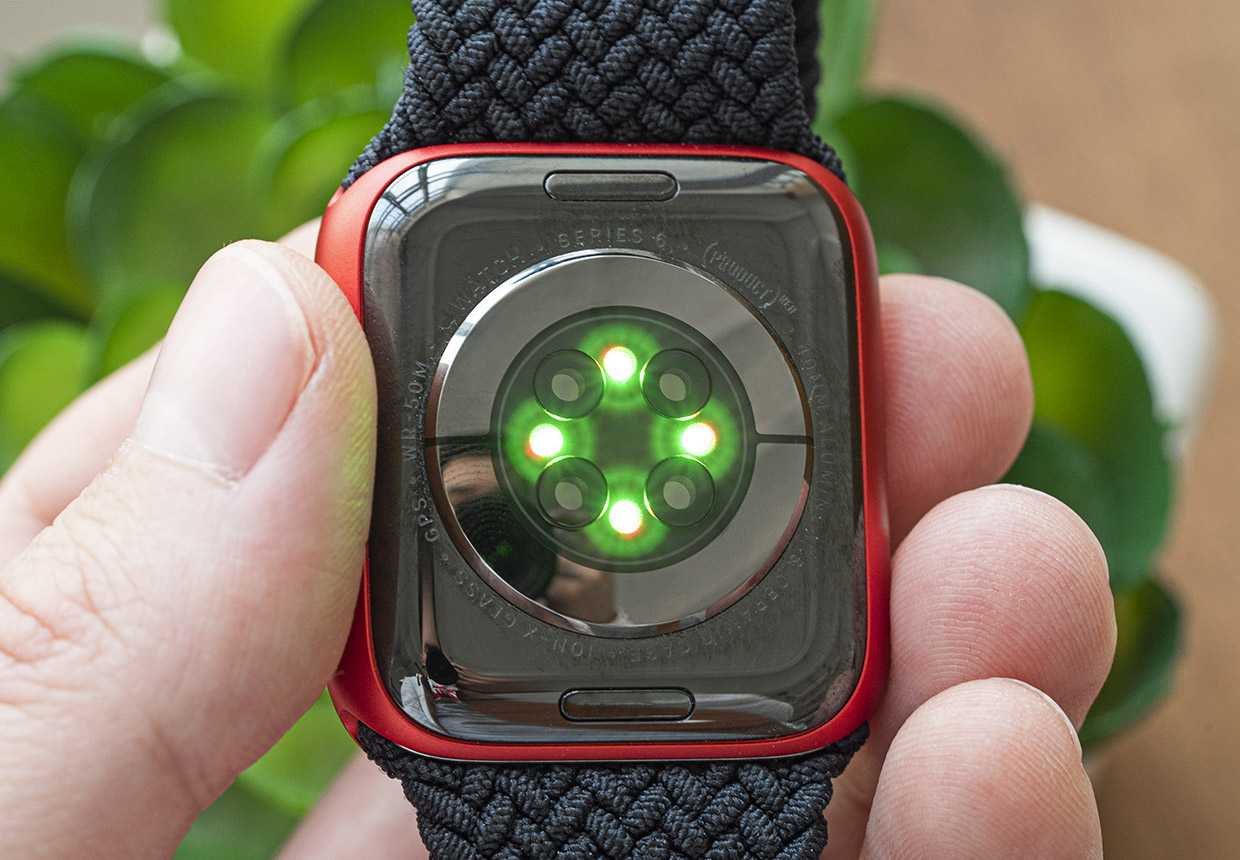 Чтобы реализовать возможность замерять уровень сатурации, Apple переработала нижний блок надкожных датчиков Apple Watch. Он разделён на четыре светодиодных кластера и столько же фотодиодов.