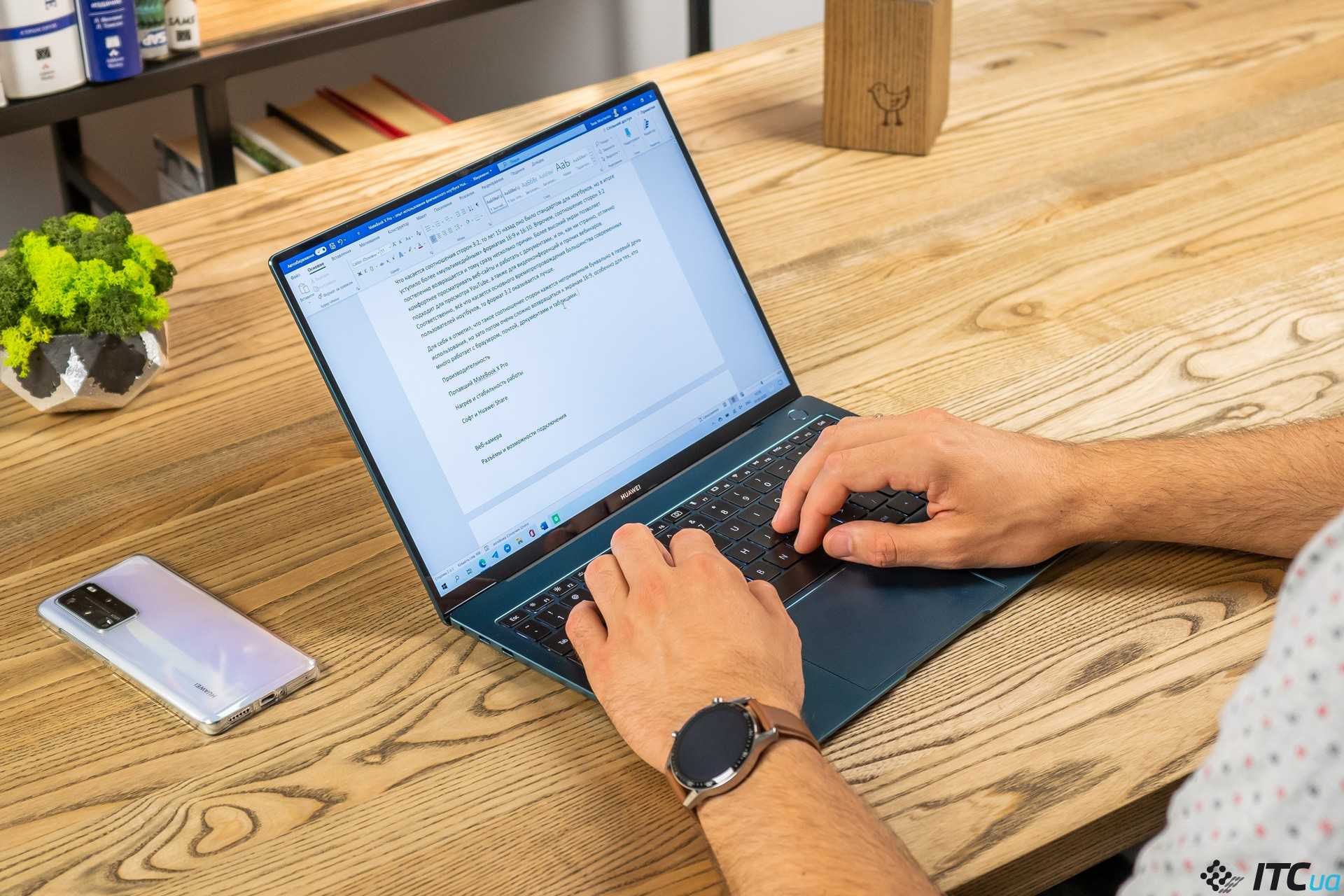 Собственно, благодаря рамкам корпус ноутбука по размерам ближе к 13-дюймовым, чем 14-дюймовым моделям. Об экране я детальнее ещё расскажу в соответствующем разделе, но пока отмечу, что его размер и соотношение сторон на фоне компактного корпуса являются одной из самых сильных сторон MateBook X Pro. К слову, сами размеры ноутбука составляют 304х217 мм, при толщине 14,6 мм и весе 1,33 кг. Его довольно комфортно носить с собой как в наплечной сумке, так и в рюкзаке.