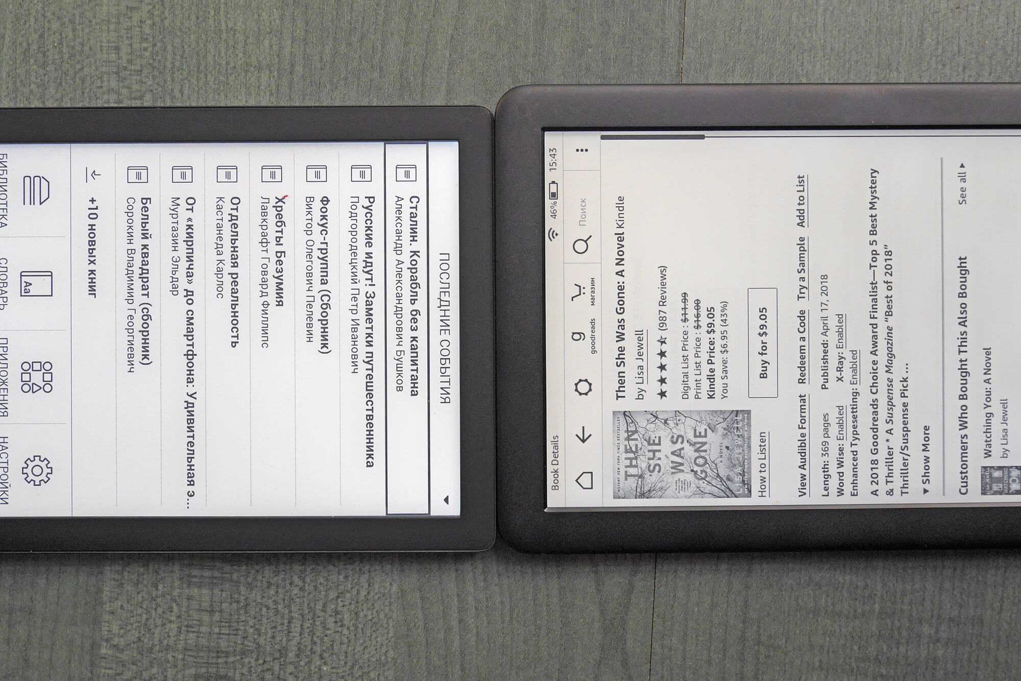 Разрешение дисплеев слегка различается: 1448 х 1072 точки у PocketBook и 1440 х 1080 у Kindle. На практике разницы нет никакой. Плотность пикселей в обоих случаях достигает внушительных 300 ppi (принято считать, что с этой цифры человеческий глаз уже не различает отдельные точки на дисплее).