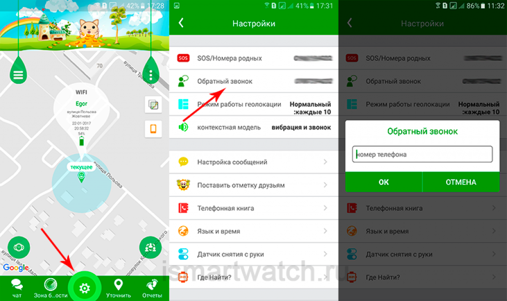 В новых версиях некоторых приложений, в частности, СиТрекер, для смарт-часов опция обратного звонка удалена по этическим соображениям. Если у вас установлено такое программное обеспечение, то можно воспользоваться СМС-командой. Достаточно отправить на номер ребенка USSD-запрос вида:
