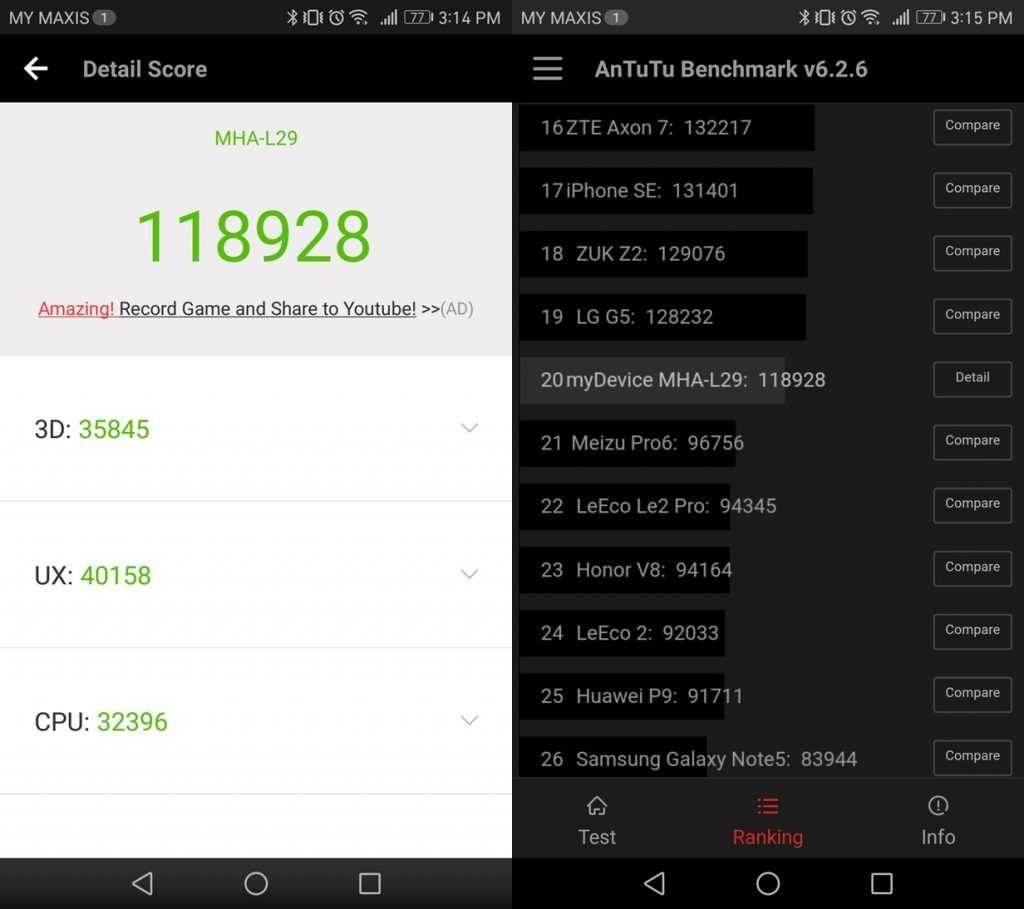 Судя по бенчмаркам, у Kirin 960 мощнее процессорная часть, а у Snapdragon 820/821 — графика. Хотя платформам уже много-много месяцев, они топовые, и потому до сих пор актуальны. В работе у Honor 9 не возникает никаких затыков, нет ощущения, что ему не хватает мощности.