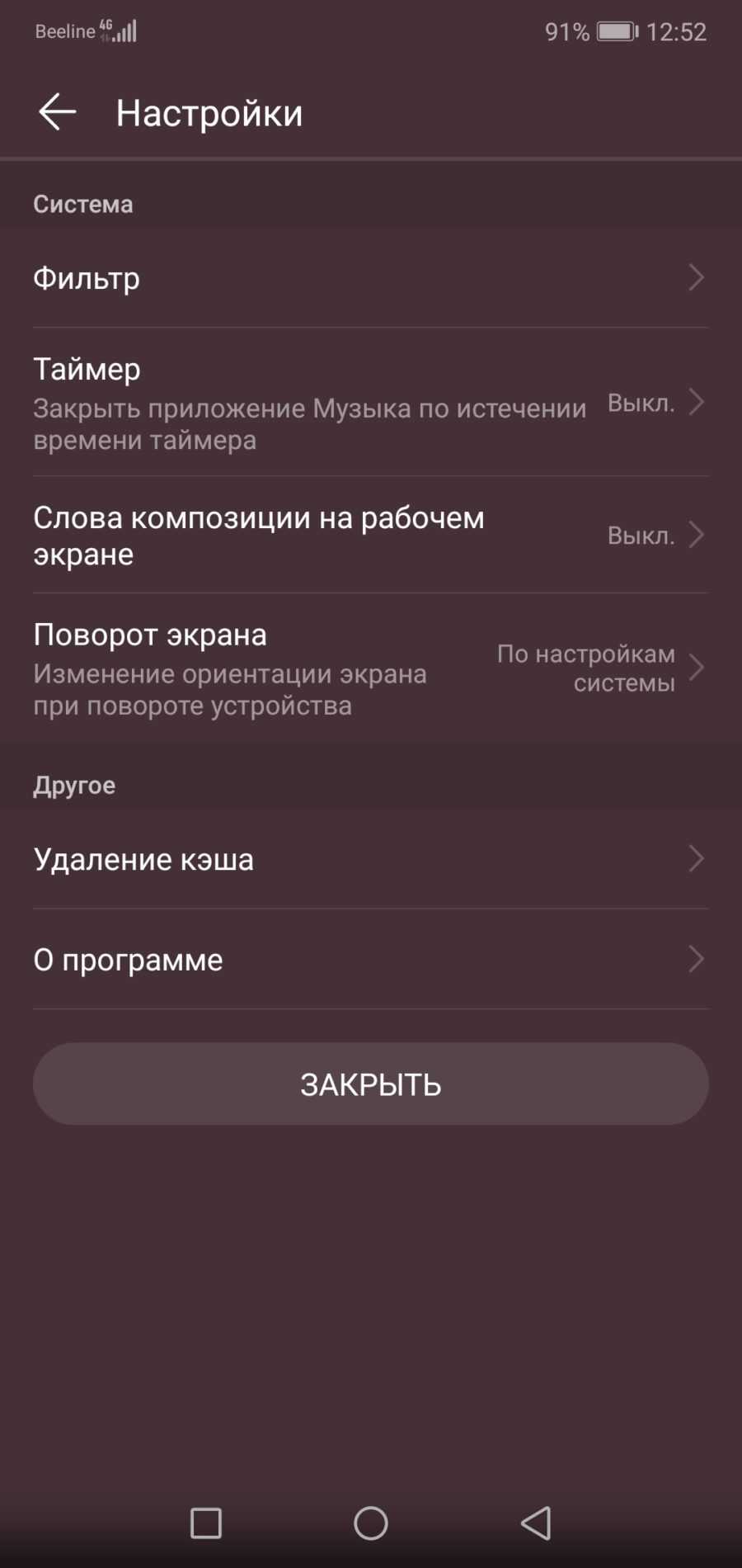 Главный косяк стандартного музыкального плеера – нет вообще никаких настроек звука.