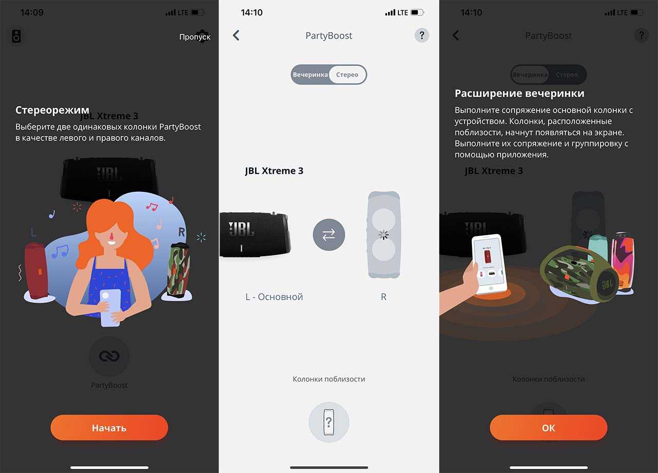 Да, про мобильное приложение: с помощью него можно обновить прошивку колонки и управлять подключением и отключением нескольких акустических систем JBL.