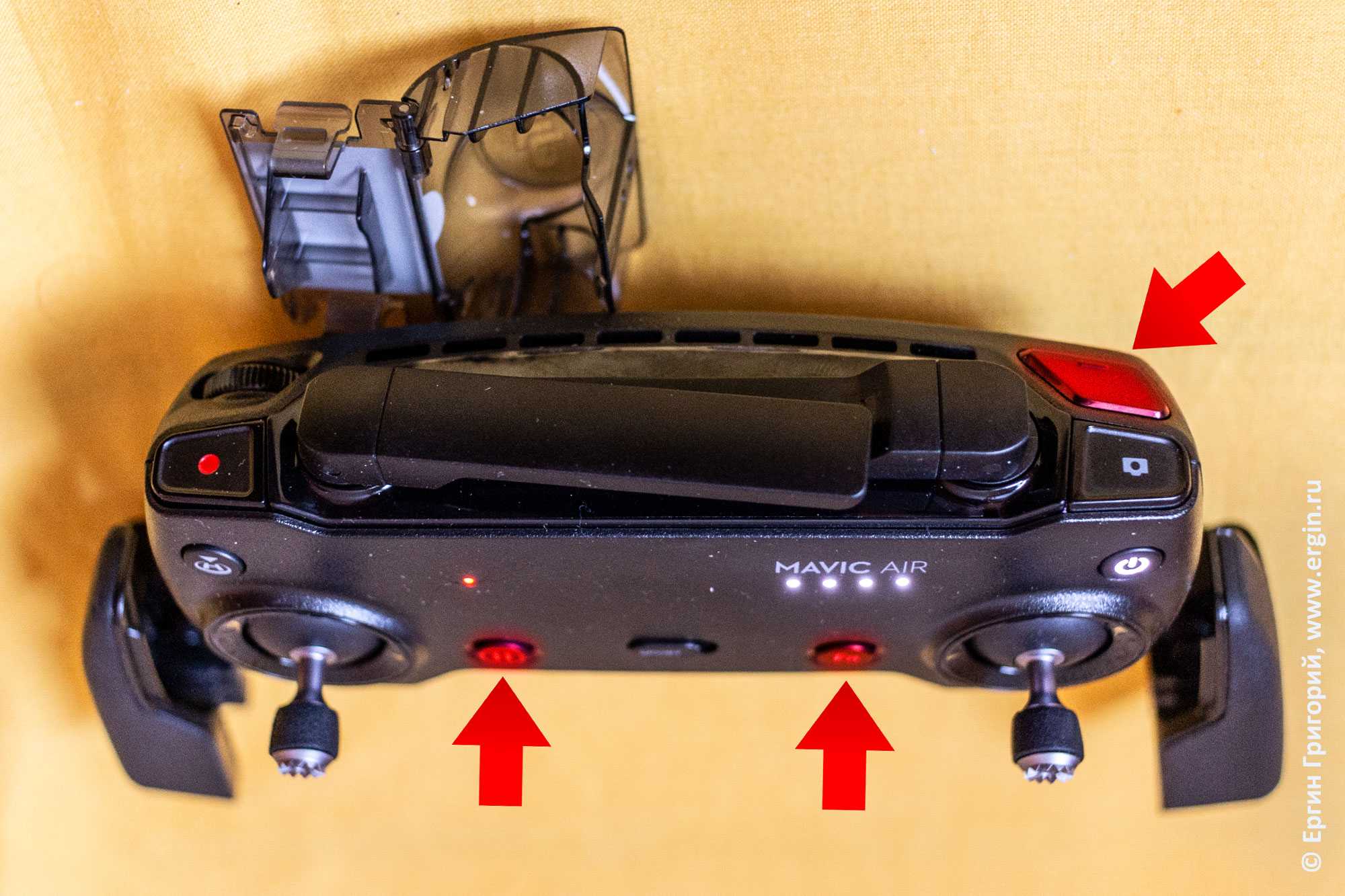 3. Просто пульт управления, без смартфона. Подключение пульта DJI Mavic Air без телефона: нажать на кнопку на задней стенке дрона, держать до первого писка, нажать на пульте три кнопки разом, как Ctrl-Alt-Del: