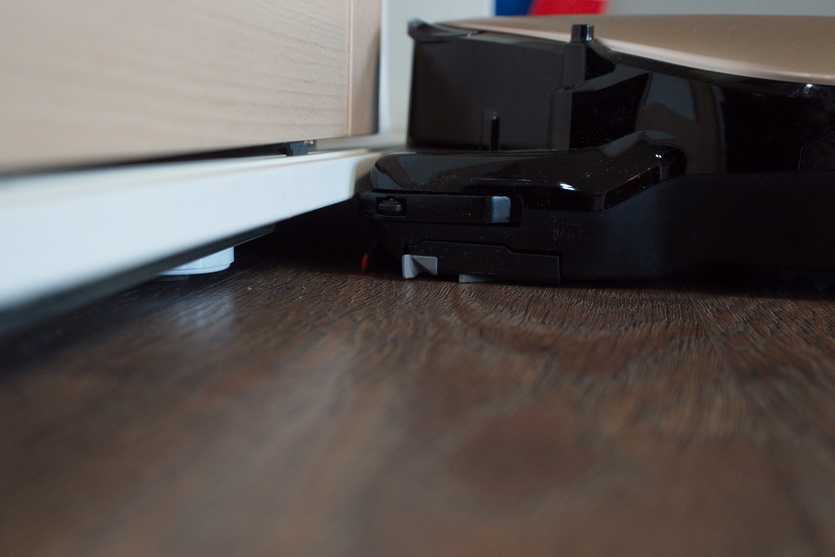 Когда пылесос подъезжает к такому препятствию, о чем оповещаются его управляющие элементы, из нее опускается шторка, увеличивающая силу всасывания.