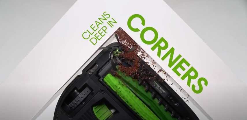 - У пылесоса имеются две боковые щетки, которые помогают собирать мусор более качественно. А специальная технология «глубокая очистка углов» позволяет ему осуществлять сбор до 96 % мусора по углам помещений.