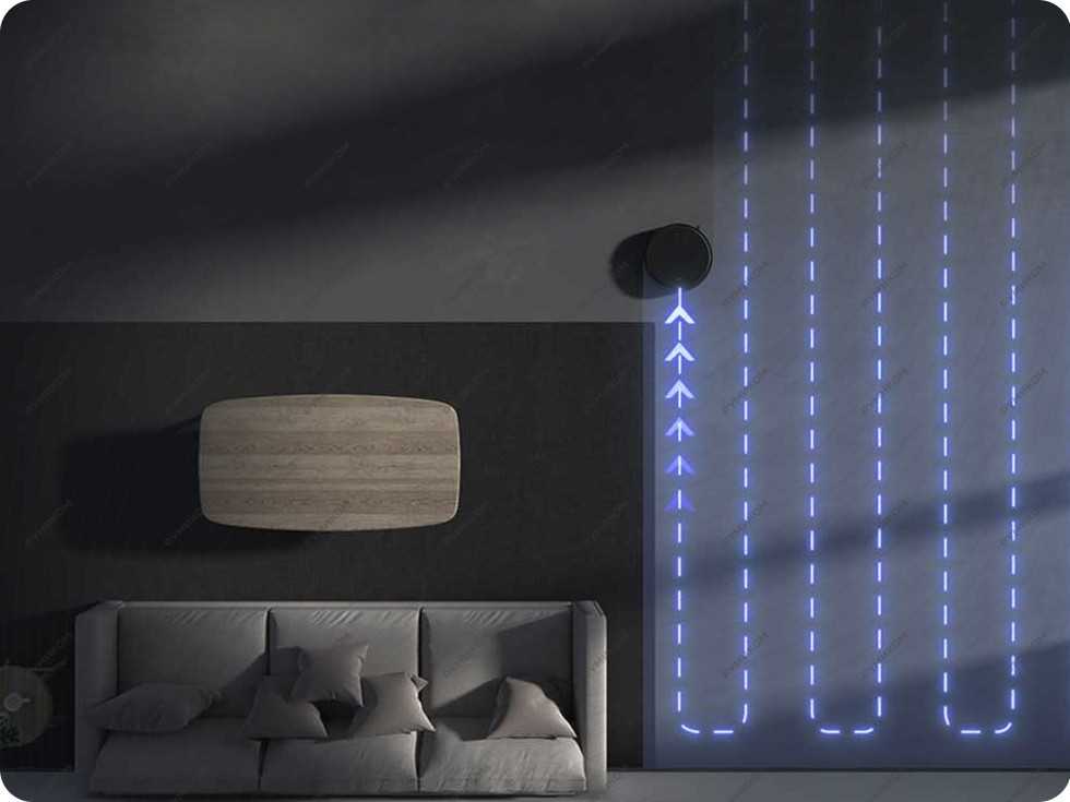 Передняя ToF-камера тесно работает с высокоточным датчиком пространства, осуществляя умное сканирование. Робот-пылесос MiHome заранее знает, сможет ли он пролезть по высоте под тот или иной предмет мебели, и не убедившись в этом, он не полезет под шкаф или под кровать.
