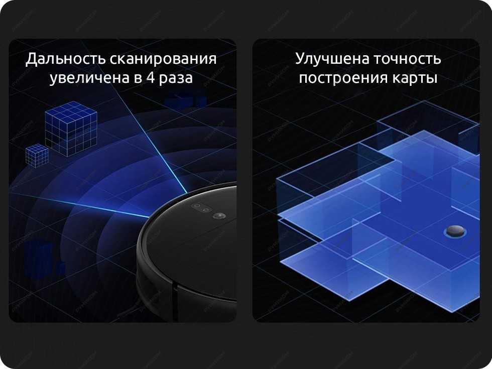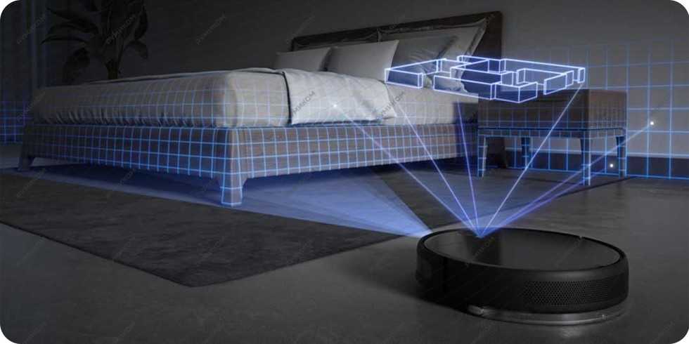 Xiaomi Mi Roborock Sweep One оснащен LDS-лазером. Это система «умного пылесоса» вращается на 360 градусов вокруг своей оси. Он способен обходить преграды в виде стен, мебели, других расположенных объектов. Скорость сканирования – около пяти секунд. Сверхчувствительная навигация самостоятельно прокладывает маршрут движения в режиме реального времени.