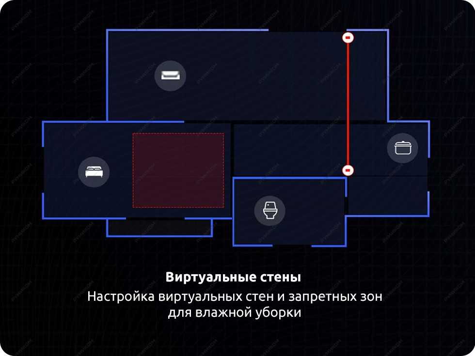 - Установка виртуальных границ для ограничения передвижения умного-помощника.