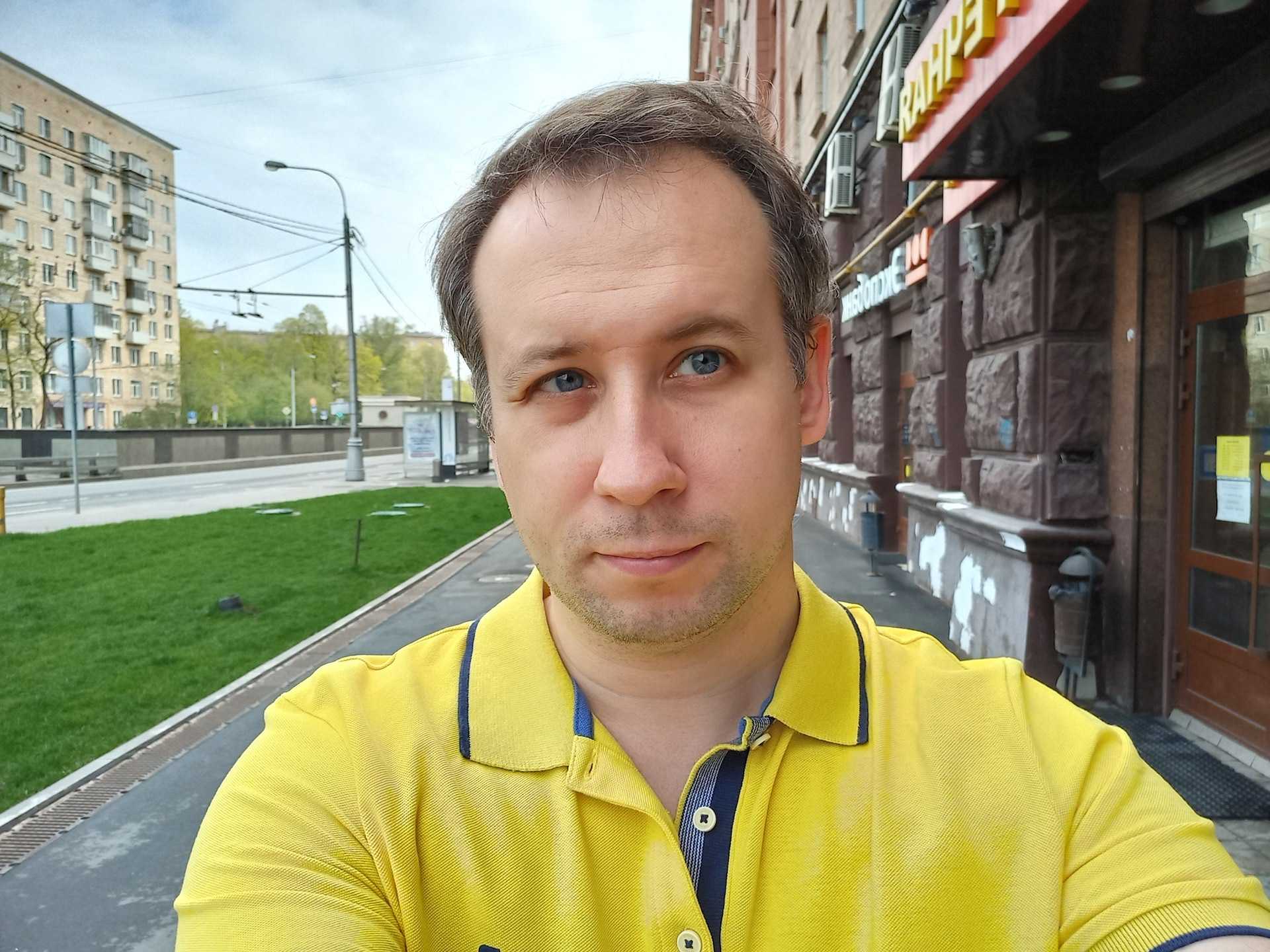 Фронтальная камера хорошая: тут и опциональный широкоугольный режим для групповых снимков, и портрет для «замыливания» фона, и ночной режим для съёмок при плохом освещении. Пример съёмки в ярком рассеянном офисном свете: