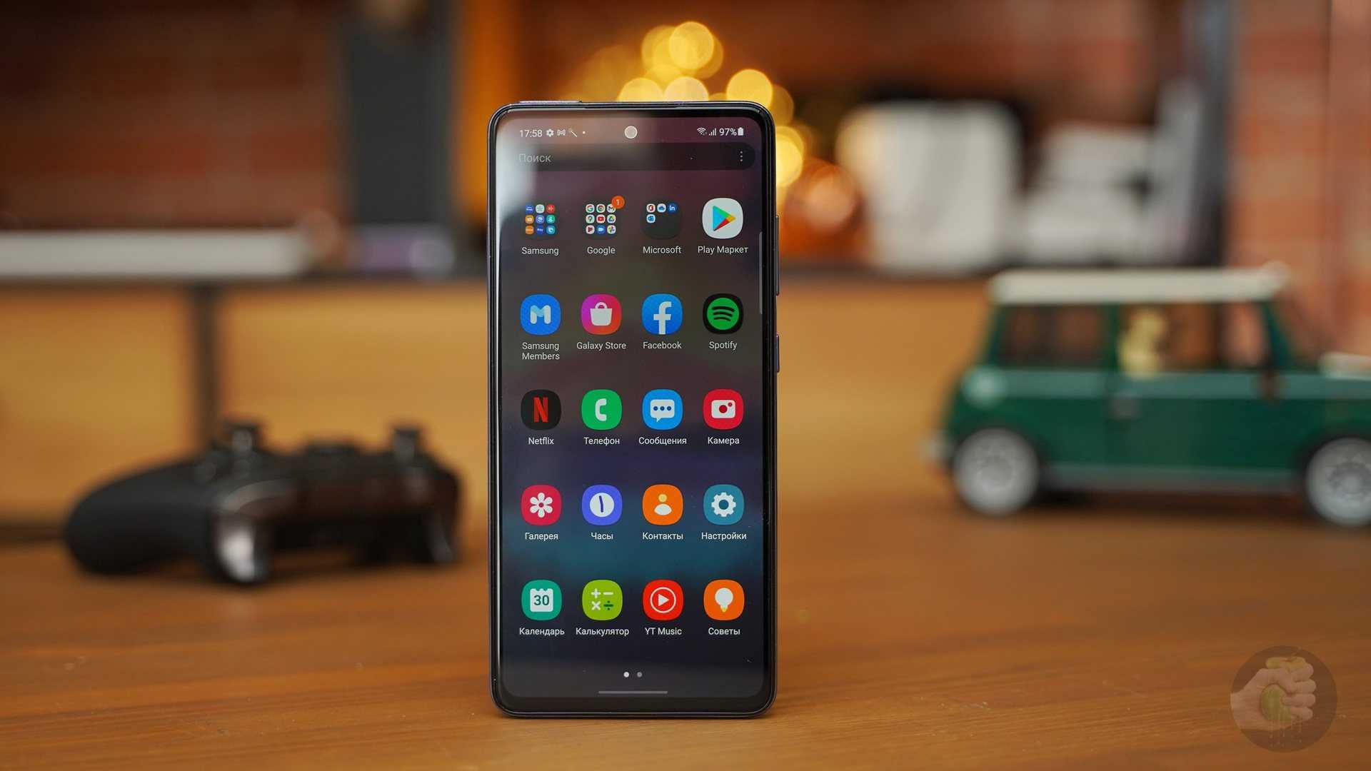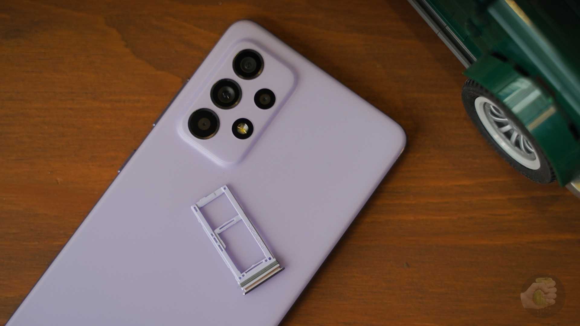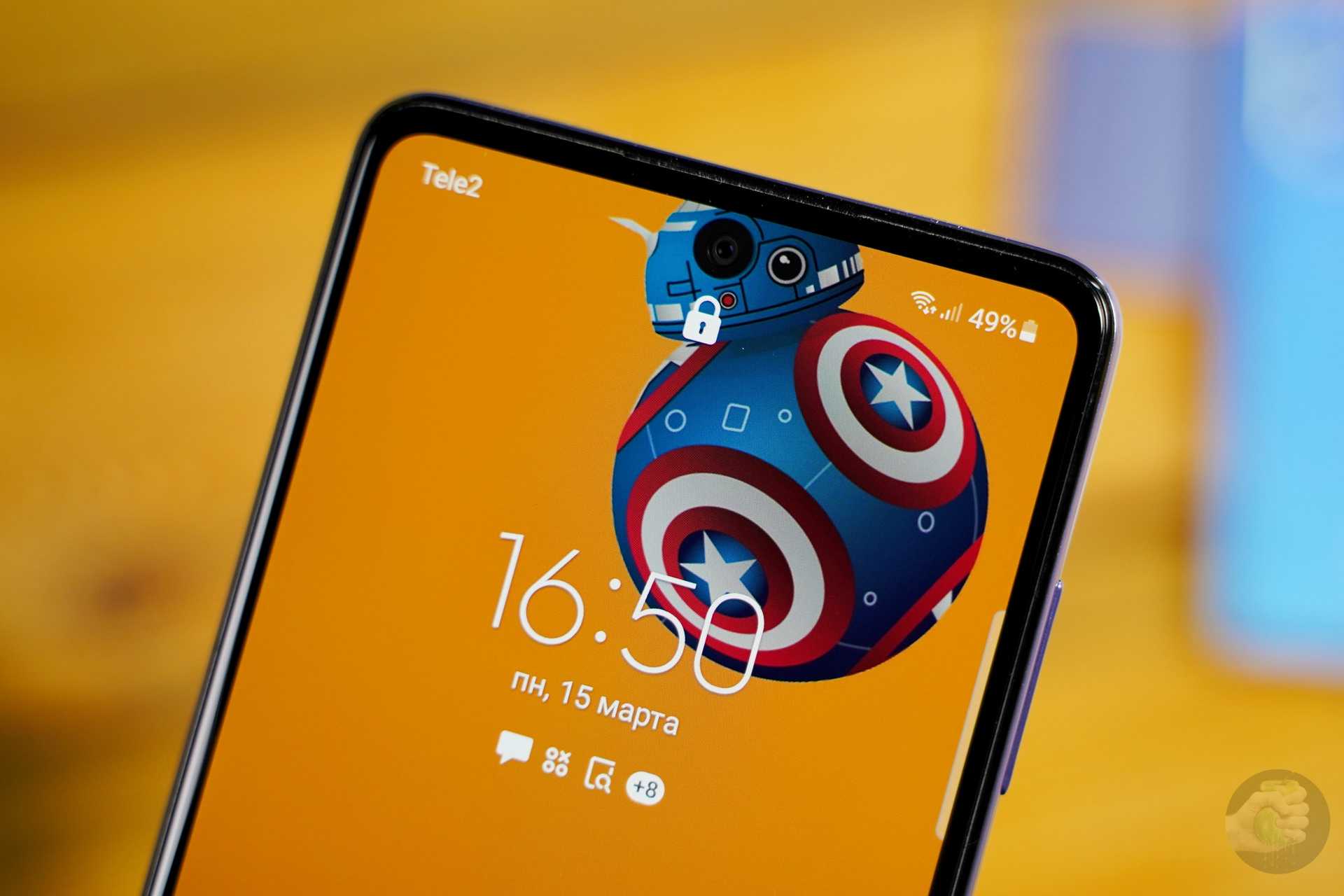 Если фронтальная камера одна-одинёшенька, то на задней части корпуса целых пять камер. На первый взгляд, всё то же самое, что было и в Galaxy A71, но на самом деле изменения есть. Во-первых, основная 64-Мп камера обзавелась оптической стабилизацией. Во-вторых, вместо датчика глубины для обработки портретов теперь трёхкратный оптический зум.