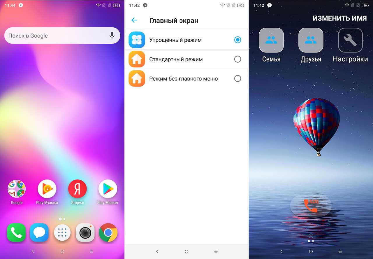 На вкладке «Главный экран» в настройках «Экрана» выбирается его вид – стандартный, с отдельным меню приложений, или без такового, а также упрощенный. В последнем случае на дисплее по умолчанию используется минимальное количество крупных значков (ярлыков приложений).