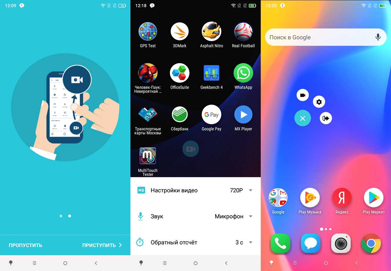 Перед записью скринкаста в формате MP4 надо заранее определиться с качеством видео (480р, 640р, 720р), одновременной регистрацией звука и таймером обратного отсчета (0, 3 или 5 секунд).