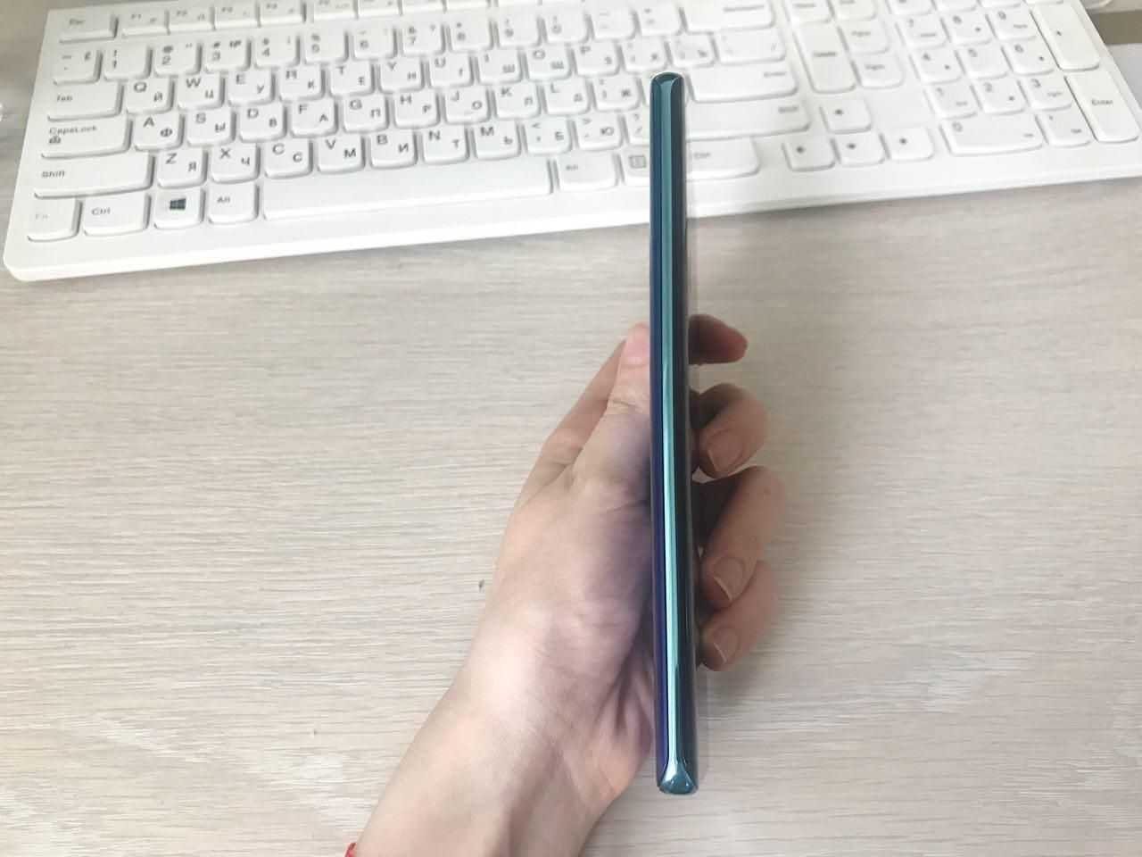 Смартфон обладает большим дисплеем без рамок с изогнутыми краями. Порадовало отсутствие чёлки, стеклянный корпус.