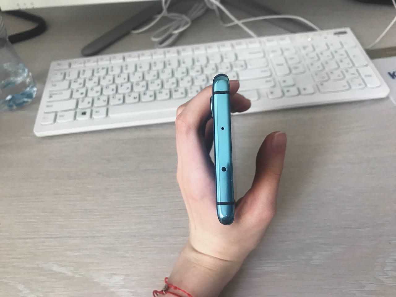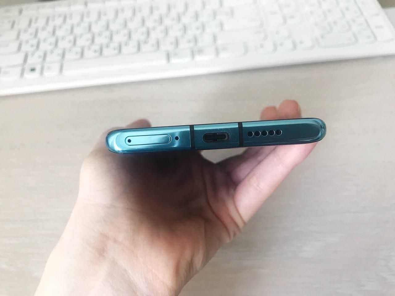 Кроме динамика, нижний торец имеет разъем USB Type-C для синхронизации и зарядки, слот для SIM-карт и микрофон, который легко спутать с отверстием для извлечения лотка SIM. 3,5-мм аудиоджек для проводных наушников отсутствует, как и переходник на USB-C в коробке.