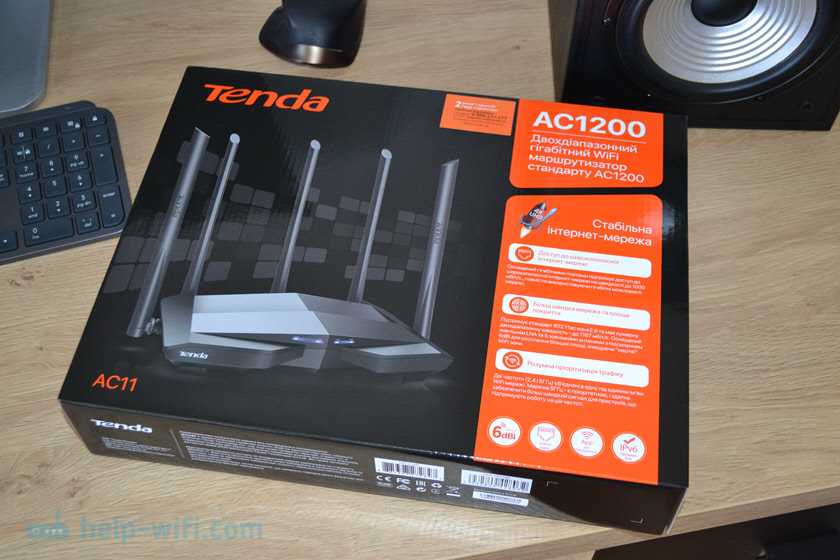 Tenda AC21 поставляется в большой коробке. На самой коробке можно найти очень много полезной информации о роутере: технические характеристики, особенности и сравнение с другими моделями от Tenda.