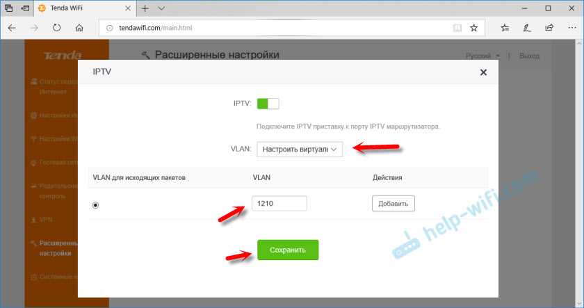 Если нужно настроить IPTV под Ростелеком и указать VLAN вручную, то в меню «VLAN» выберите «Настроить виртуальную локальную сеть». Пропишите VLAN ID (его можно узнать у провайдера) и сохраните настройки.