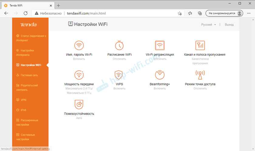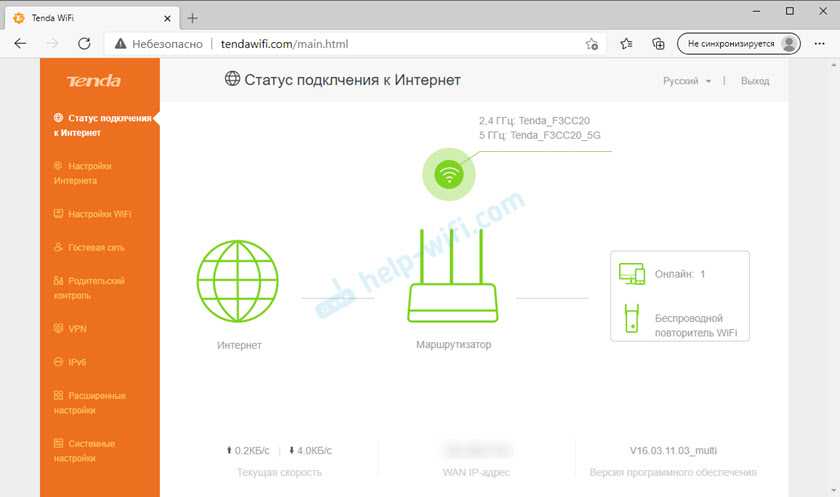 На роутеры Tenda всегда устанавливается хороший веб-интерфейс с понятным расположением всех настроек. Веб-интерфейс доступен на разных языках (можно сменить язык в настройках). Главная страница выглядит вот так: