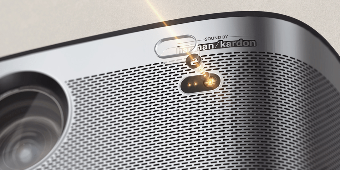 Отдельно стоит упомянуть о звуке проектора XGIMI MoGo Pro. Новый проектор оснащен двумя мощными 3-ватными динамика и сабвуфером Harman-Kardon. Эти динамики часто используют в премиум проекторах дорогой ценовой категории. Они обеспечивают сбалансированный и хорошо настроенный чистый звук.