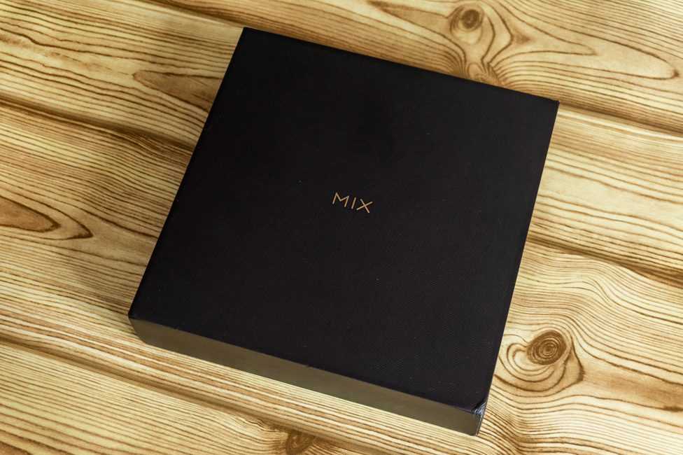 Тонкая квадратная коробка из плотного картона с приятной текстурой и лаконичной золотистой надписью MIX. Открыв коробок нас встречает смартфон на толстой подложке. Убрав её видим картонку с напутствием от Лэя Цзюня.