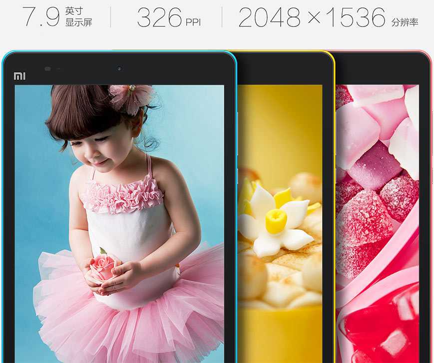 В Mi Pad встроено 7,9″ экран с разрешением 2048х1536 пикселей (326 ppi), который покрыт защитным стеклом Corning Gorilla Glass 3, что не только защищает дисплей от царапин и внешнего воздействия, но и гарантирует достаточную контрастность и насыщенность цветов для беспрепятственного считывания информации с экрана в условиях прямого солнечного света.