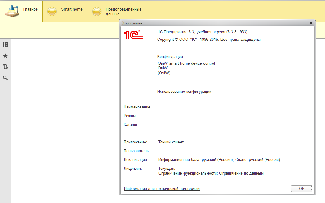 - Платформа, не ниже 8.3.6. Для экспериментов использовалась учебная платформа, версия 8.3.8.1933.