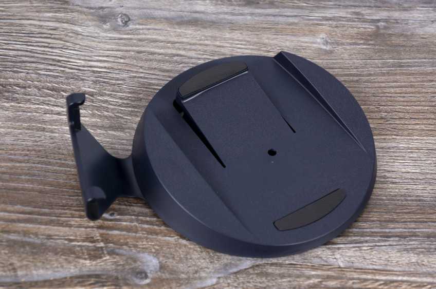 К сборке и материалам претензий нет. Белые боковые панели сделаны из чуть шершавого пластика и изнутри текстурированы фирменными крестиками, кружочками, треугольниками и квадратами — причём они настолько мелкие, что разглядеть их можно только через хорошую лупу. Центральная же стойка сделана из глянцевого чёрного пластика: выглядит красиво, но мгновенно пачкается и покрывается пылью.