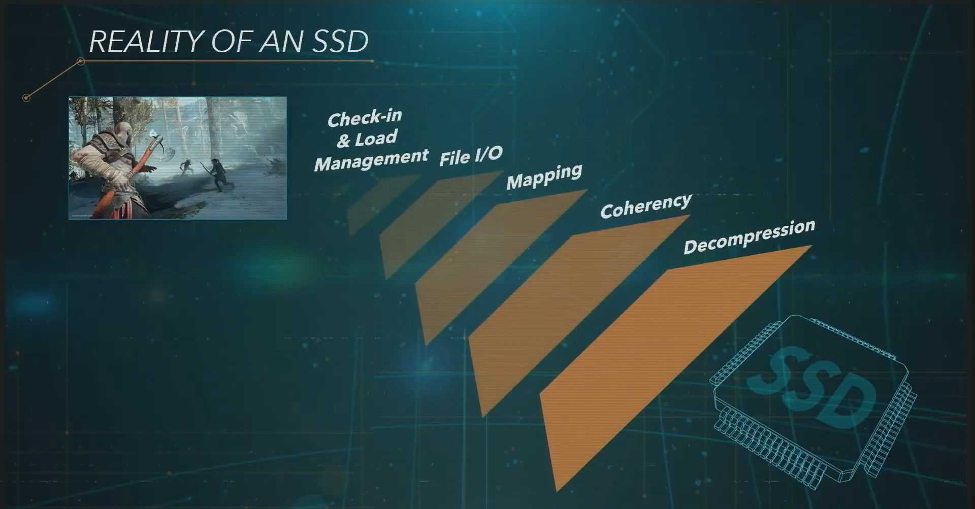 Еще одно преимущество накопителя, спроектированного Марком Церни – наличие контроллера, который подключается к основному чипу через четырехполосое соединение и оснащен двенадцатью аппаратными блоками, которые используются для нивелирования проблем зон SSD. Говоря простым языком, при работе с PS5 разработчики могут сами выбирать приоритет к загрузке тех или иных данных.