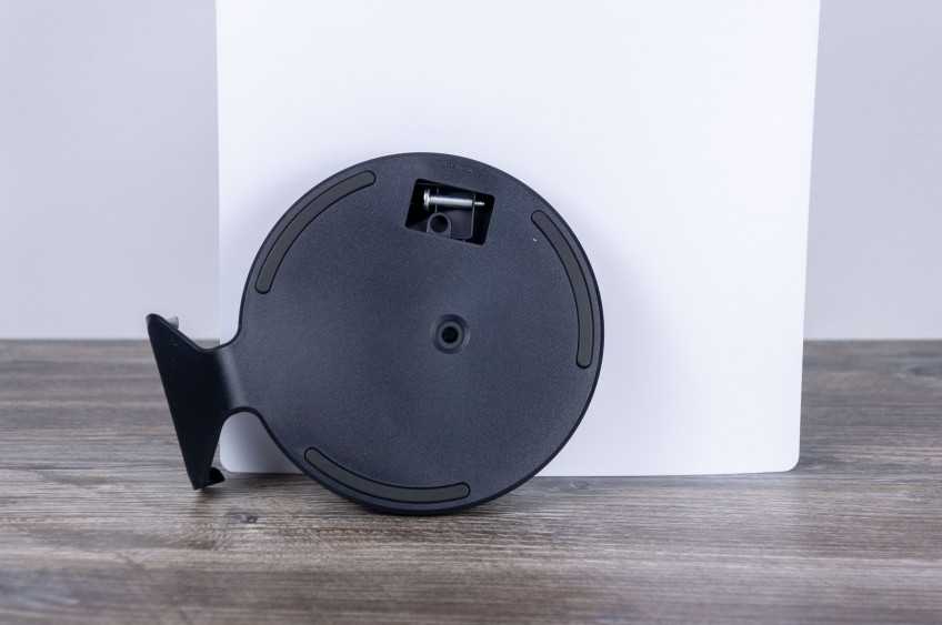 А вот внешний вид консоли впечатляет. PS5 действительно очень большая: в высоту — 39 см, в ширину и глубину — 26 и 10,4 см. Впрочем, если вы не ограничены высотой тумбы под телевизором, особых проблем с установкой не будет. Как и Series X, консоль можно поставить как вертикально, так и горизонтально — в обоих случаях лучше использовать комплектную подставку. В положении «на боку» достаточно зацепить её двумя защёлками, а «стоя» — одним небольшим винтом, для чего пригодятся или отвёртка, или монетка. Приятный момент: в самой подставке предусмотрен скрытый отсек, в котором хранятся тот самый винтик и пластиковая заглушка, прикрывающая резьбу на самой консоли.
