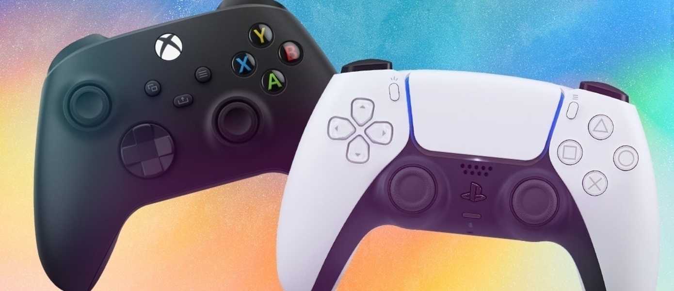 DualSense из комплекта PlayStation 5 на фоне геймпада Xbox Series S и X (слева)
