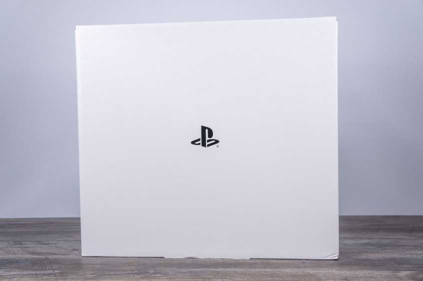 По оформлению коробки и комплекту поставки PS5 следует заветам предшественниц: всё максимально просто. Суперобложка из тонкого картона, на котором напечатаны изображения приставки и перечислены её основные достоинства, а под ней — утилитарная толстая коробка с лого PS.