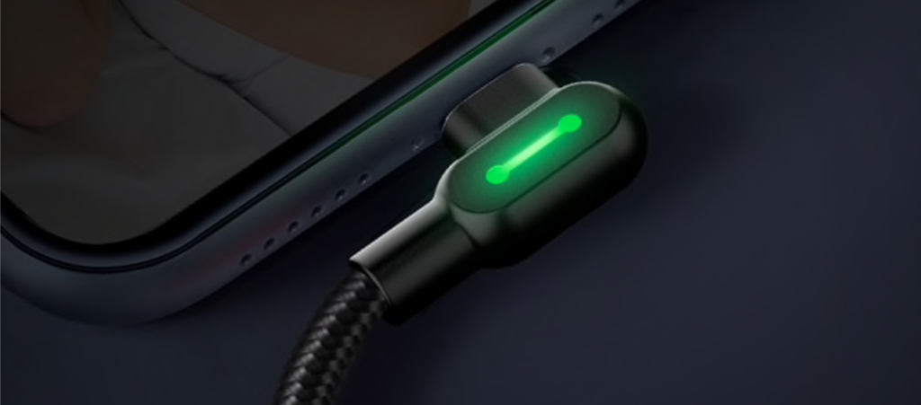 Этот зарядный кабель имеет очень прочную оплетку, снабжён Г- образным штекером и световым индикатором. Не подвержен образованию трещин в местах сгиба. Может применяться технология быстрой зарядки.