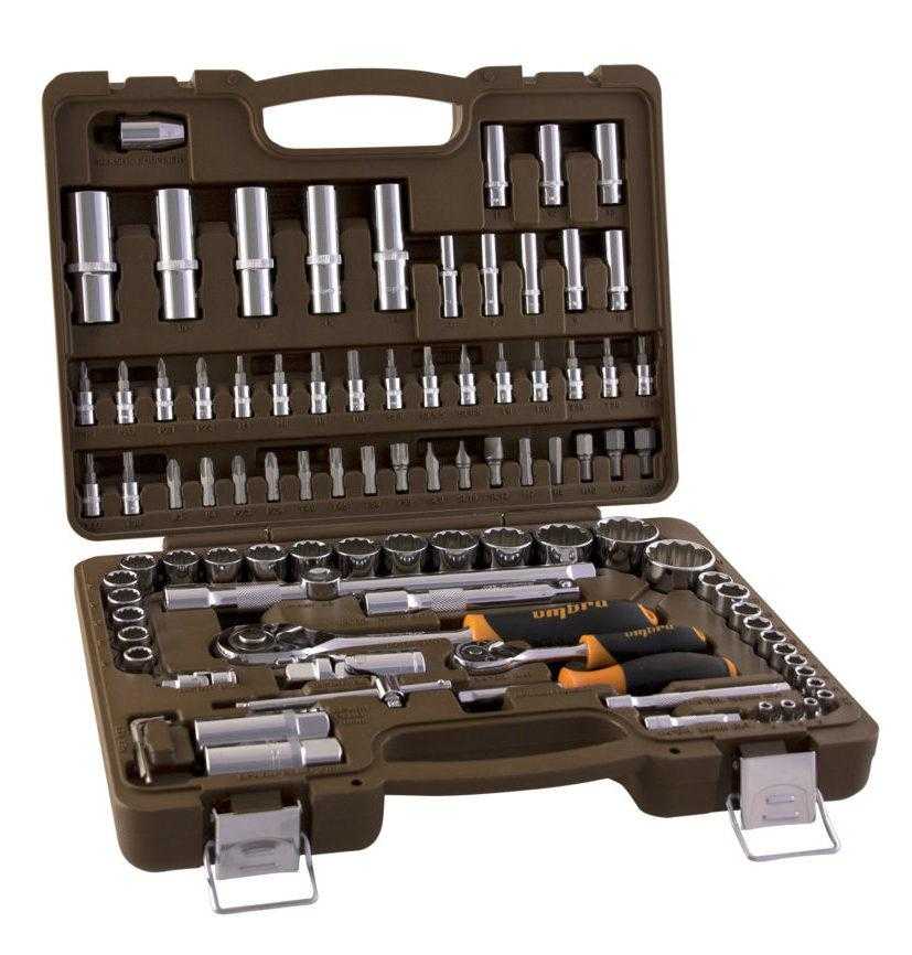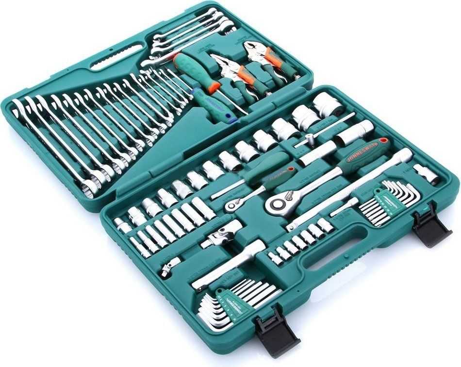Одна из самых популярных моделей для универсального применения. Содержит большое разнообразие гаечных ключей и головок. Всего в кейсе 101 предмет. Все инструменты высокого качества и изготовлены из качественной стали.